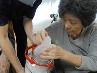 清風園では中庭で野菜を育てています。2階のフロアでぬか漬けをやって頂きました。年季がちがうのか、職員ではうまくいかない事も手際よく余裕を感じます。