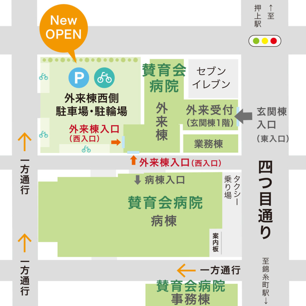 2025年12月29日(月)から外来棟西側の新駐車場・駐輪場をご利用いただけます。